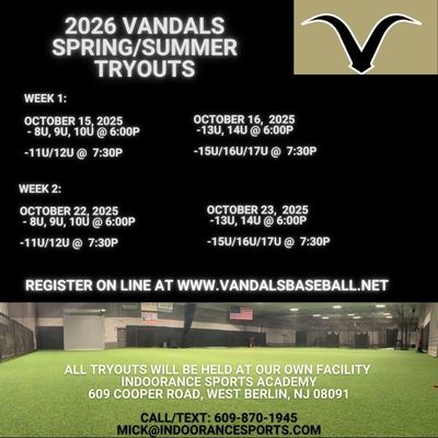 Vandals 2026 Winter/Spring/Summer Tryout Dates and Registration Links